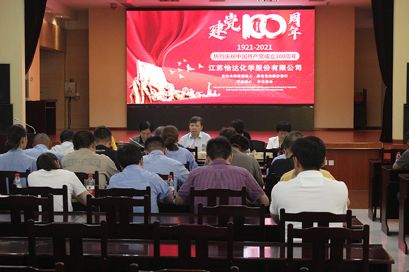 為熱烈慶祝中國共產(chǎn)黨成立100周年,江蘇怡達(dá)化學(xué)股份有限公司黨支部于2021年7月3日在公司職工之家組織召開了黨員大會,本次會議由公司黨支部委員蔡國慶同志主持,大會在莊嚴(yán)的國歌聲中開幕。